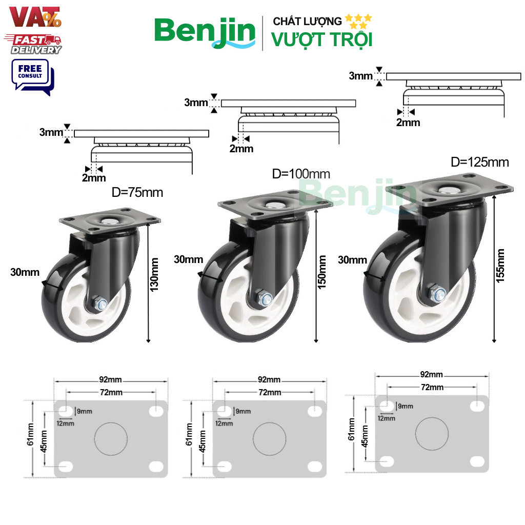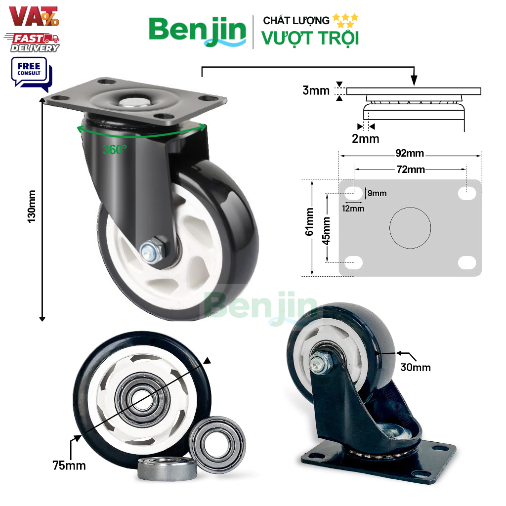 Chống ồn: Trung bình (Phù hợp mặt sàn phẳng, nền kho xưởng).