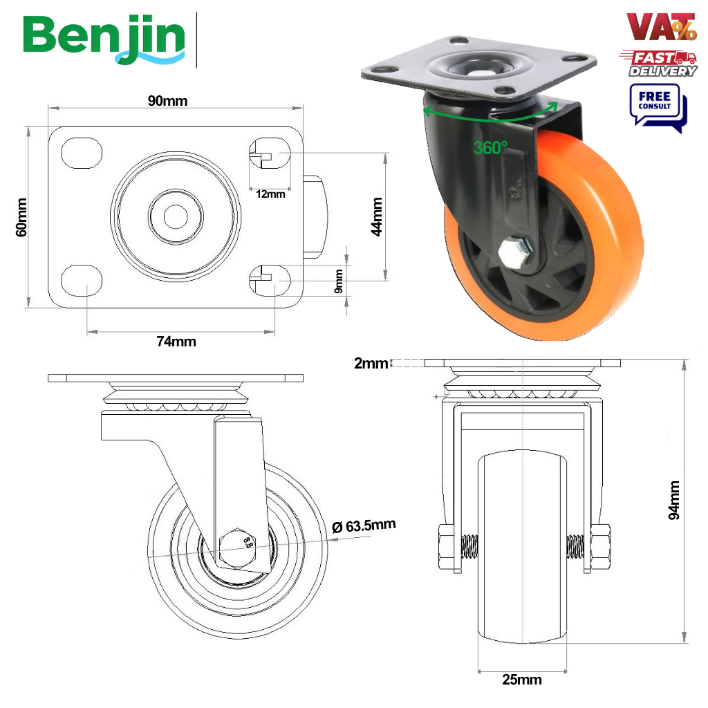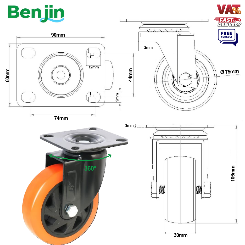 | Bánh xe đẩy PP tải trung mạ điện màu cam | ||