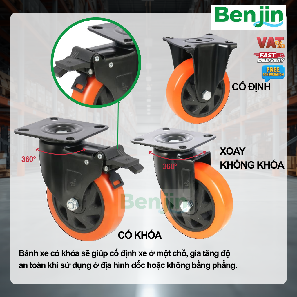 Chống ồn: Trung bình (Phù hợp mặt sàn phẳng, nền kho xưởng).