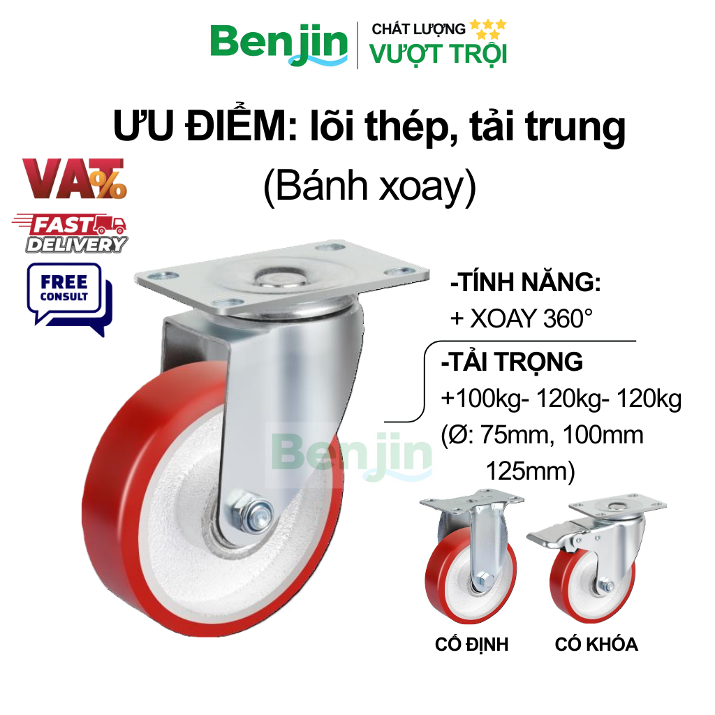 | Bánh Xe Đẩy Tải Trung PU Lõi Thép |