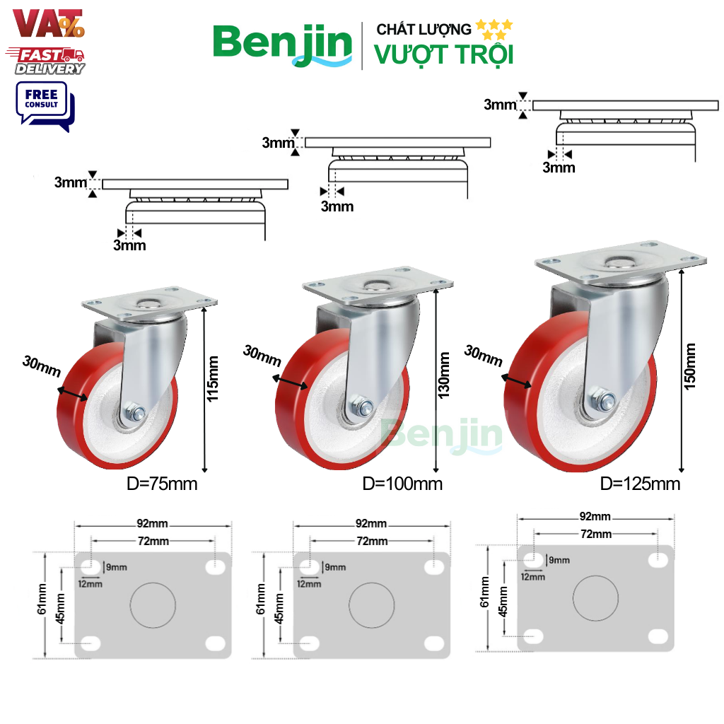 Khi nói đến việc vận chuyển những khối hàng hóa khổng lồ hay máy móc hạng nặng trong các nhà máy, bánh xe đẩy PU lõi thép chính là sự lựa chọn số 1. Được thiết kế để đối đầu với những điều kiện làm việc khắc nghiệt nhất, dòng sản phẩm này hội tụ đầy đủ các yếu tố: Sức mạnh của thép, sự linh hoạt của nhựa PU và độ bền bỉ của hệ thống càng siêu dày.
