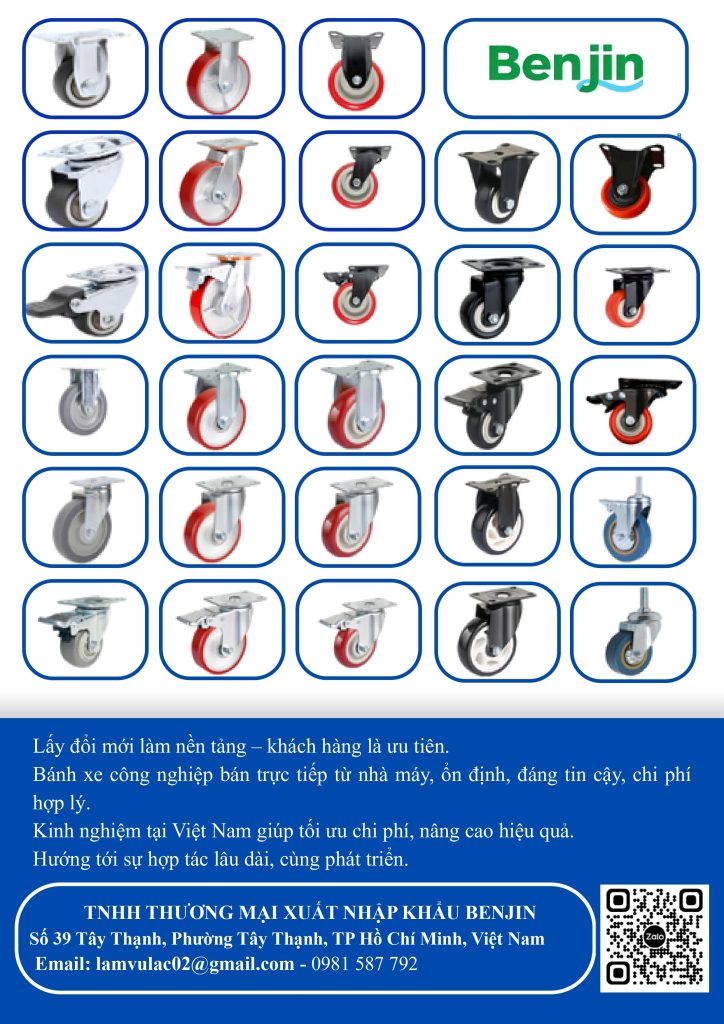 Đây là Video được sản xuất và quay trực tiếp tại xưởng sản xuất của BENJIN từ khâu ép bánh cao su, tới dập càng xoay, ráp bi sắt, tới khâu thành phẩm hoàn thiện nhất. Quý khách có nhu cầu sử dụng bánh xe đẩy xin hãy liên hệ bộ phận kinh doanh của…